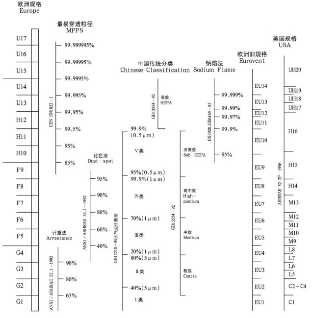 空氣過(guò)濾器是以捕集空氣中的粉塵為目的。浮游粉塵的粒徑分布很廣,如肉眼可視的10微米以上的纖維屑、粉塵等粗大粉塵及肉眼無(wú)法觀察到的如碳粉類亞微米級(jí)粒子。并且浮游粒子的濃度范圍廣。另外如病毒、細(xì)菌類、酵母類、霉菌等也以各種狀態(tài)存在于空氣中。在選擇空氣過(guò)濾器時(shí),應(yīng)考慮生產(chǎn)環(huán)境中浮游粒子的狀態(tài)、被要求的潔凈度、經(jīng)濟(jì)性等方面。對(duì)于半導(dǎo)體工業(yè)、電子工業(yè)、航空航天、光學(xué)、印刷、建筑物空調(diào)設(shè)備及食品、藥品、化妝品、醫(yī)療、農(nóng)林、畜牧等領(lǐng)域。恒泰公司對(duì)應(yīng)下圖所示的各種塵埃粒子備有高品質(zhì)的各類產(chǎn)品供各行業(yè)選擇。